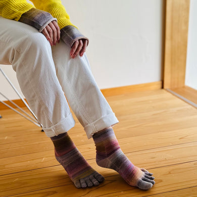 その天然糸を丁寧に編んで仕上げた5本指の靴下です。