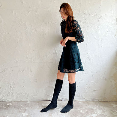 ベビーアルパカ5本指リブ柄 ハイソックス 23-25cm