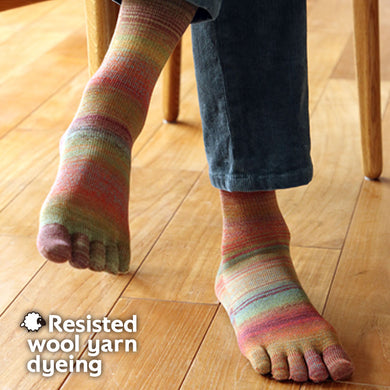 ウールかすり染め5本指クルー丈ソックス 25-27cm