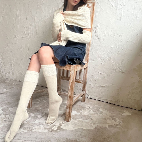ベビーアルパカ足袋 ボア切替 ハイソックス 23-25cm