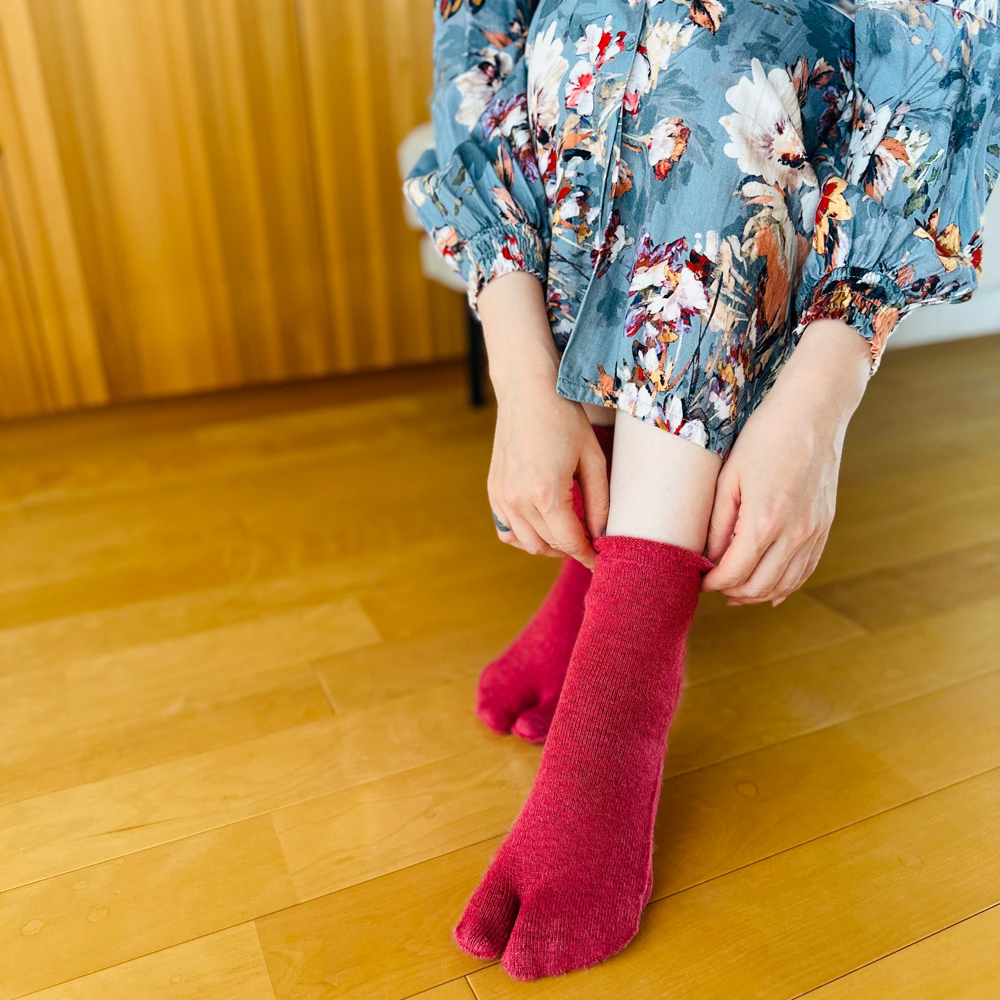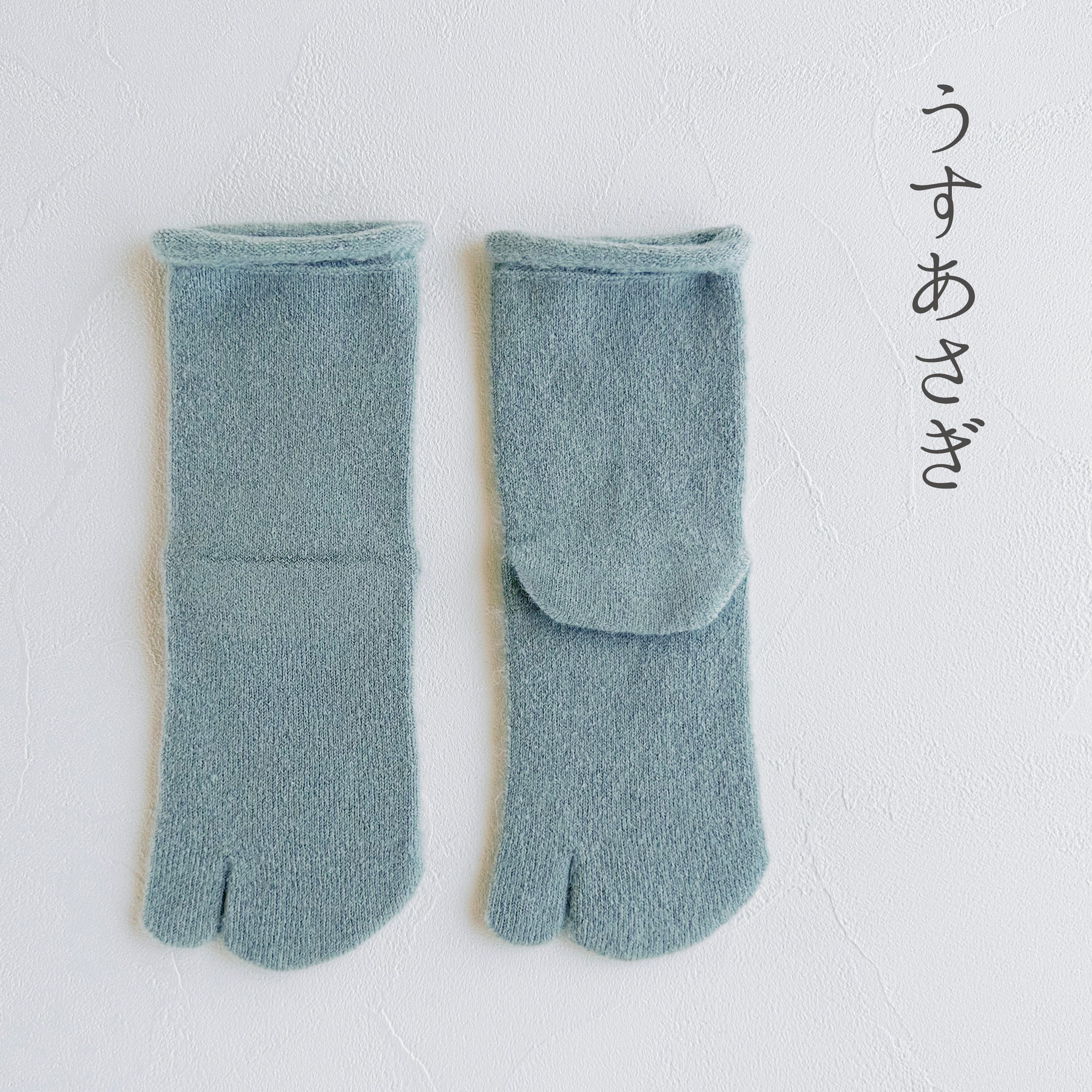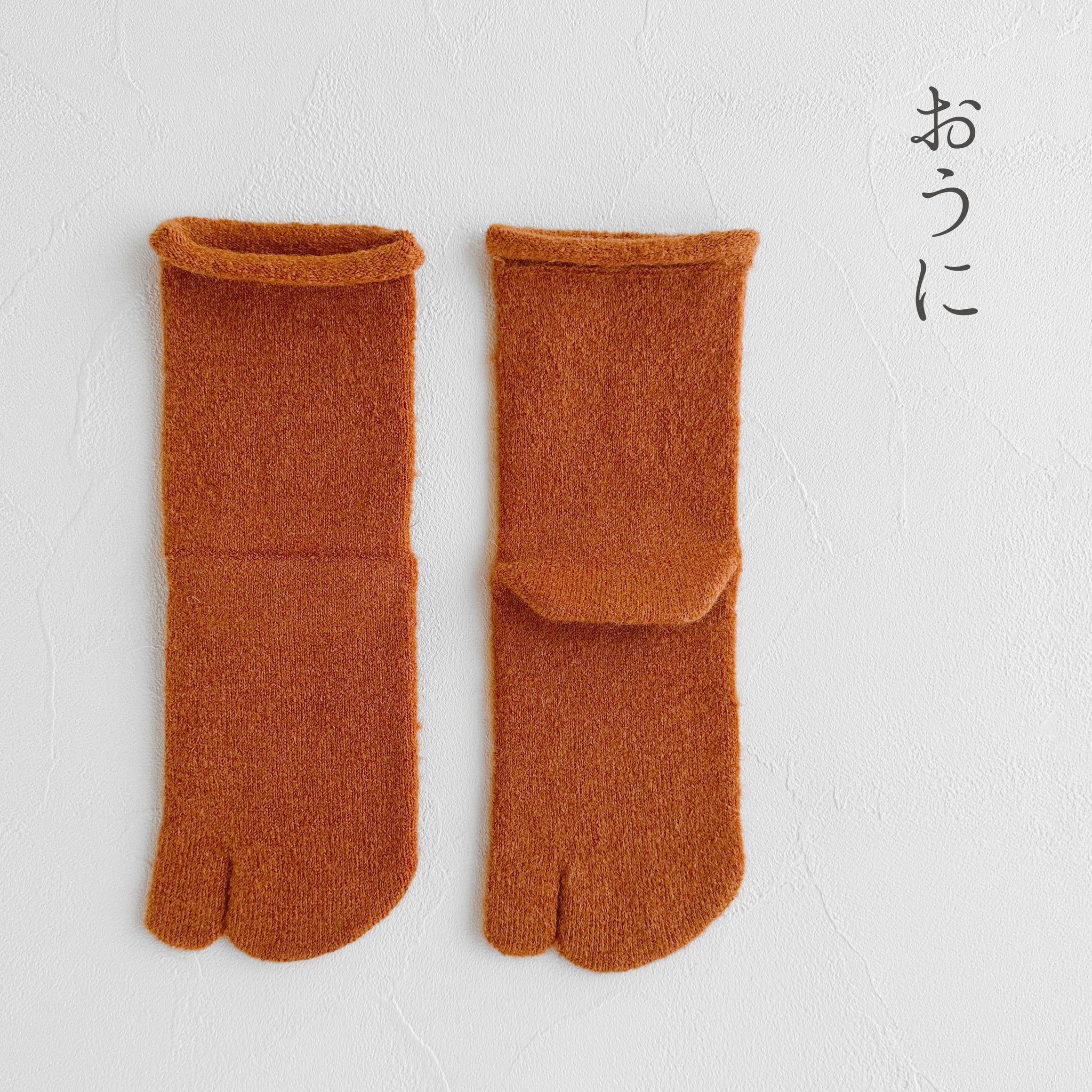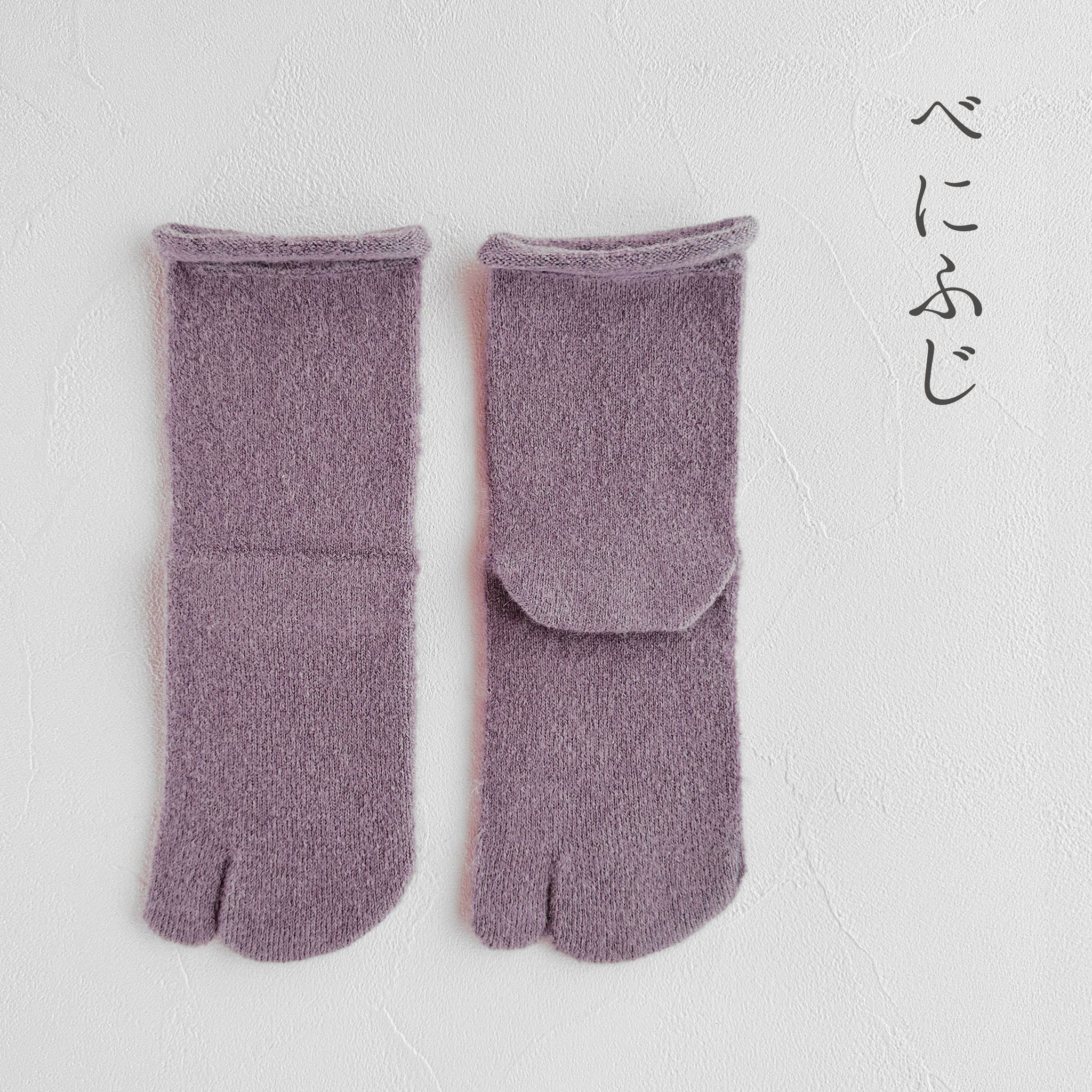 着用感も、通常のウール素材とは違い、きめの細かいその繊維は、肌触りが非常にやさしく柔らかい、暖かさに加え優しく包まれている様な感覚になります。また汚れにくく、摩擦にも強いので毛玉にもなりにくく、何シーズンも着用して頂く事ができる足袋ソックスです。